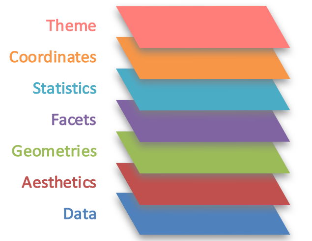L’architecture globale de ggplot2 est souvent représentée par le schéma ci-dessous :